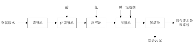 圖3 銅氨廢水折點加氯法的預處理工藝流程