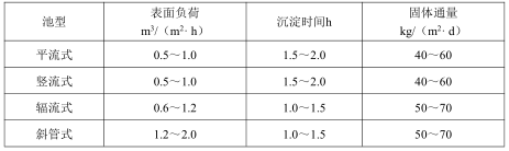 5)沉淀池的設計參數應根據廢水處理試驗數據或參照類似廢水處理的沉淀池運行數據確定;當沒有試驗條件和缺乏有關資料時,設計參數可參考表 2確定;