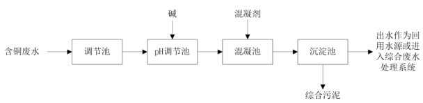 圖1 含銅廢水的化學法處理流程