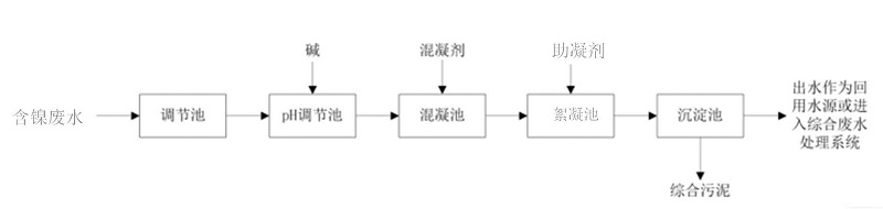 圖9 含鎳廢水化學沉淀法預處理基本處理流程